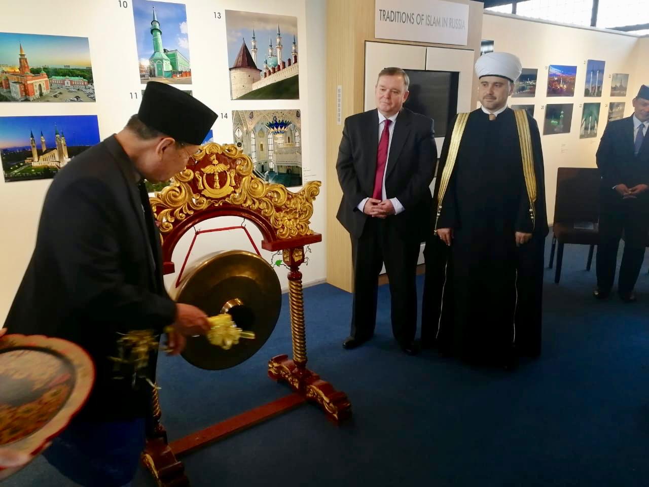 В своём приветственном слове руководитель российской делегации первый заместитель председателя Совета муфтиев России и зампред Духовного управления мусульман Российской Федерации Рушан хазрат Аббясов передал слова приветствия от имени духовного лидера российских мусульман председателя ДУМ РФ и СМР муфтия шейха Равиля Гайнутдина и поблагодарил его Величество Султана Брунея Хассанала Болкиаха, правительство страны за содействие и помощь в подготовке и реализации международного проекта Совета муфтиев России - выставки «Традиции ислама в России», отметив, что «именно Бруней стал первой зарубежной площадкой, где была открыта данная международная выставка, что свидетельствует о глубоких дружеских отношениях между народами двух стран».