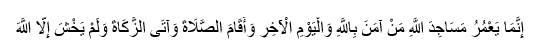 «Воистину, лишь уверовавшие в Аллаха и в Судный день будут строить мечети, а также они выстаивают молитвы и выплачивают милостыню-закят…» (9: 18).