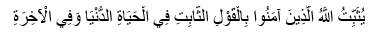 «Аллах поддерживает верующих твердым словом в этом мире и в Грядущей жизни?» (14: 27).