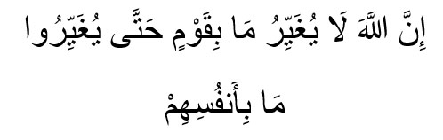 «Воистину, Аллах не меняет положения людей, пока они не изменят самих себя» (13:11).