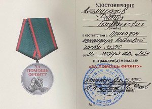 Имам-мухтасиб Воронежской области награжден медалью «За помощь фронту»